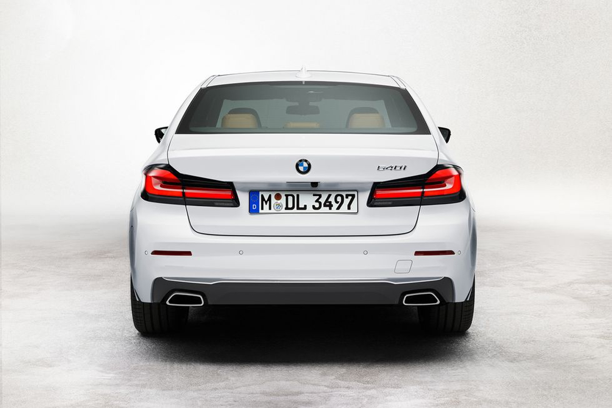 Við fyrstu sýn lítur andlitslyfta 5-serían meira köntuð og aðeins ákveðnari, LED-aðalljósin eru með skörpu útliti. Útstætt grillið lítur líka meira áberandi og þó að framljósin nái L-laga útliti hverfa sömu áherslur nú úr afturljósunum. Útblástursrörin eru nú öll eins óháð vél.