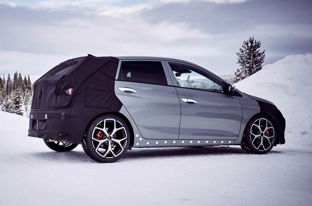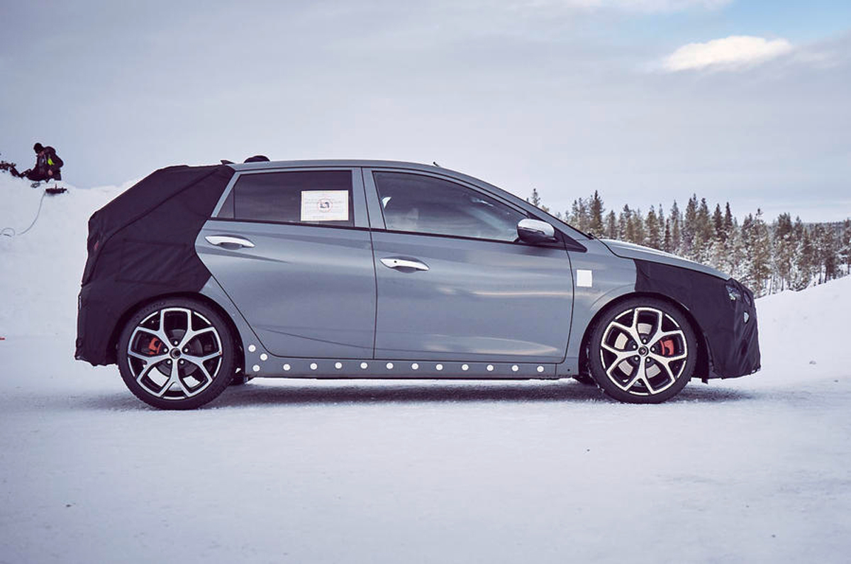 Fram- og afturhluti á prufubílnum eru áfram varin fyrir sýn, sem bendir til þess að sportlega lúkkið fái fleiri sérsniðna útlitsþætti – líklega vindskeið að aftan, vindkljúfur að framan, stækkað loftinntak og stærri útblástur – í takt við stærri i30 N.