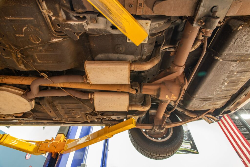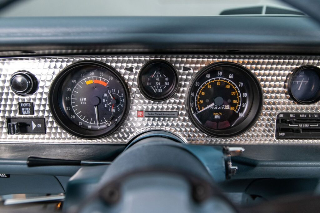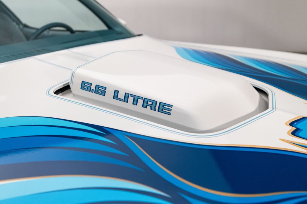 Hann er búinn 403 cubic inch Oldsmobile 6.6 lítra V8, með turbo-hydramatic 350, 3-gíra sjálfskiptingu. 10 bolta afturöxli, loftkælingu frá verksmiðju, vökvastýri, orginal Deluxe Blue Cloth innréttingu með auka mælasetti og veltistýri.