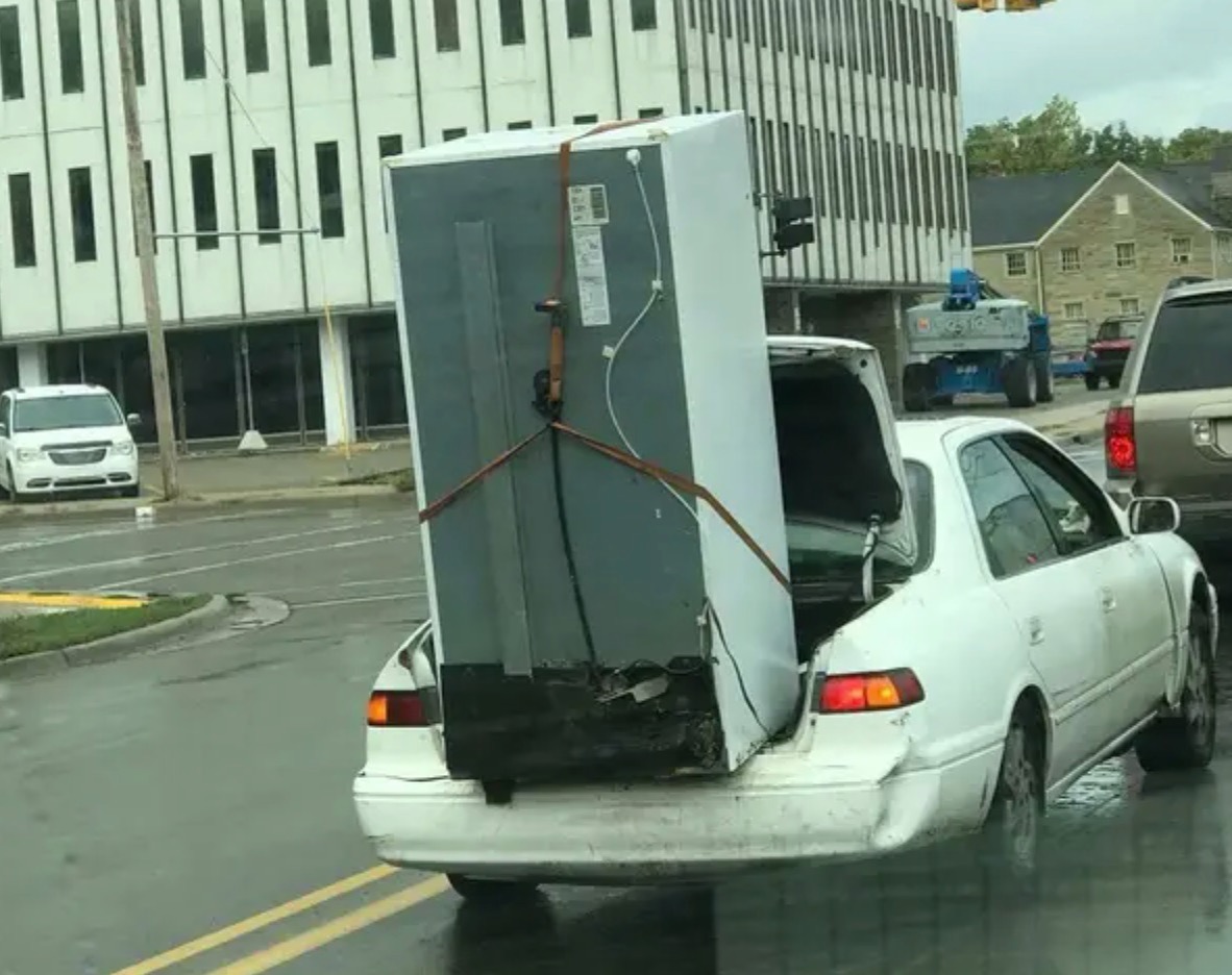 Fasteign á hjólum? Kassabíll? Húsbíll? Nei, bara ökumaður sem var að flytja og sagði: „Þetta reddast.“ Svo reddaðist það ekki og hann setti fjölda fólks í stórhættu.