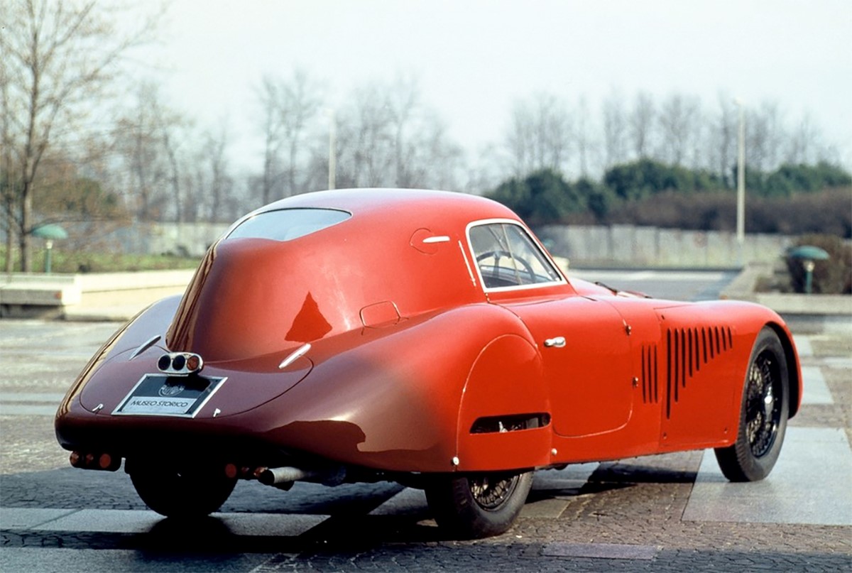 Mjög straumlínulagað, reyndist það vera. Eftir að Alfa Romeo safnið tók við bílnum og endurbyggði hann var hann mældur á Cw 0,31 í Pininfarina vindgöngin.