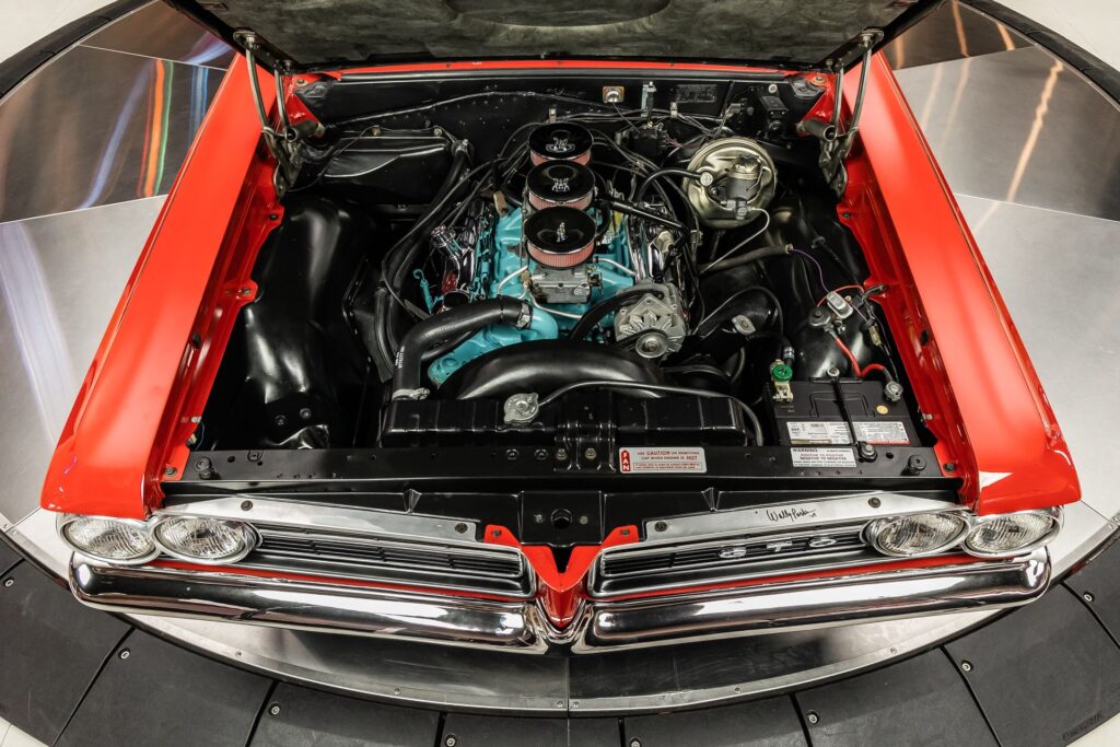 Undir vélarhlífinni er tímarétt 389ci V8 vél með Tri-Power blöndungi. Við hana er pöruð fjögurra gíra Muncie M20 beinskipting. Það er Pontiac stíll á drifrásinni sem er 10 bolta með 3,93:1 hlutföllum.