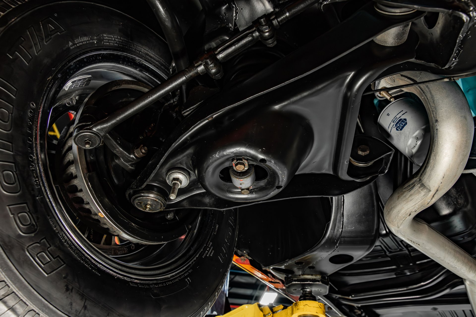 Í bílnum eru aflbremsur á öllum fjórum hjólum. Fjögurra blaða fjöðrun að aftan og tvöfalt útblásturskerfi með FlowMaster hljóðkútum.