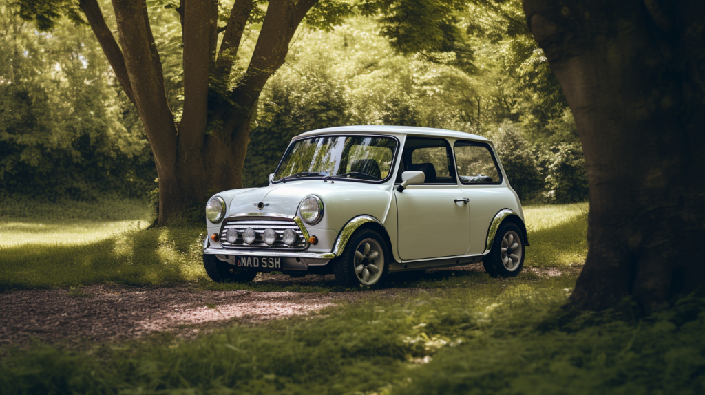 Svona gæti þessi Austin Mini Cooper S litið út eftir smá yfirhalningu. Myndin er reyndar búin til með gervigreind út frá upplýsingum um bílinn sem er til umfjöllunar í greininni.