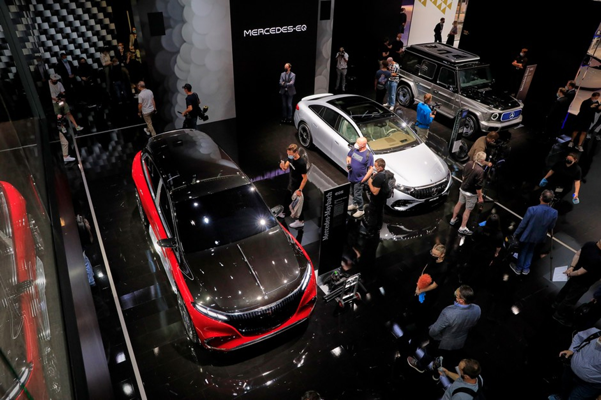 Þetta er fyrsta stóra bílasýningin sem haldin hefur verið síðan heimsfaraldurinn lokaði á svona sýningar. Tap vegna sýninga sem blásnar hafa verið af nemur 40 milljörðum evra, að sögn samtaka þýska vörusýningariðnaðarins.