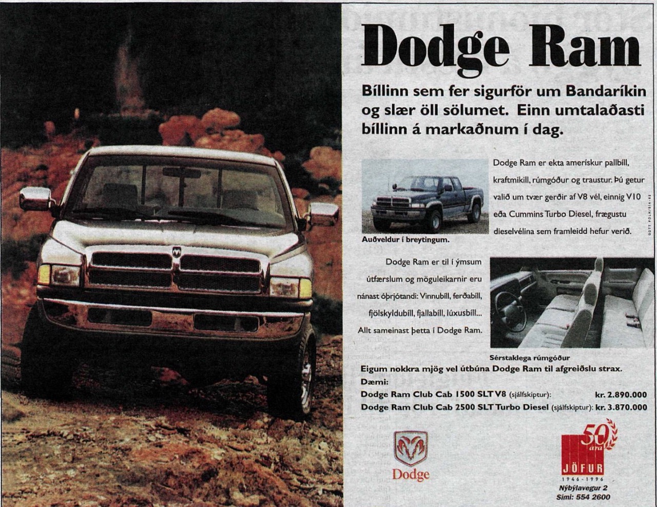 Þegar önnur kynslóð af Dodge Ram pallbílnum kom á markað 1994 hafði ég fátt fegurra séð. Safnaði blaðagreinum og myndum af þessum bíl; bílnum sem fékk hjarta mitt til að slá örar.