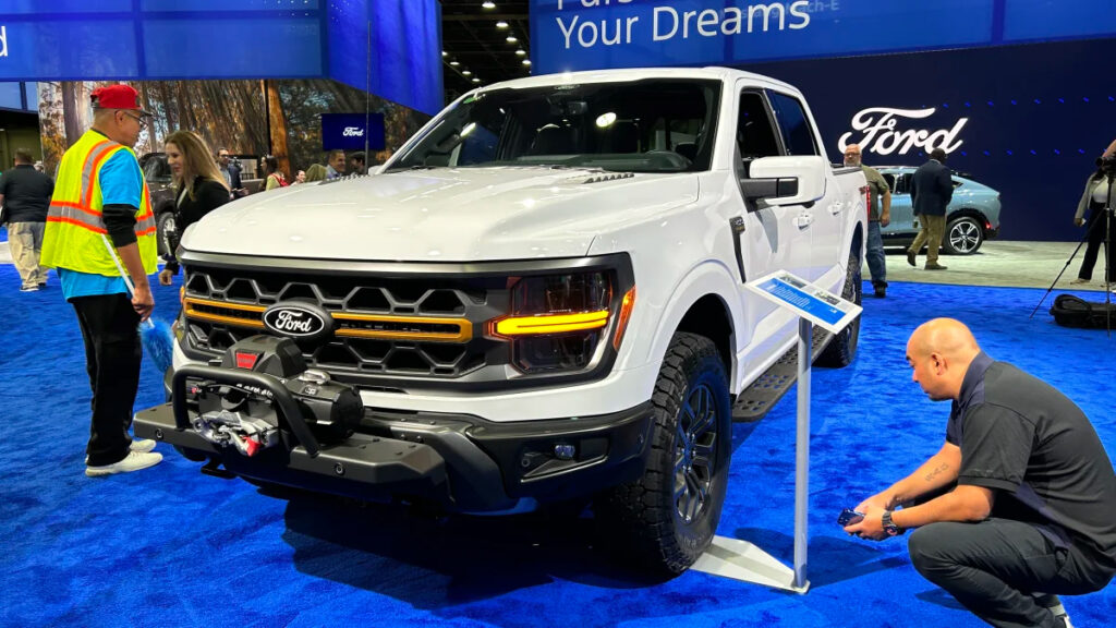 Keppnin um toppsætið okkar frá sýningunni var hörð, en að lokum bar 2024 Ford F-150 sigur úr býtum. Ford endurnærði F-150 með áhugaverðum afturhlera, snjöllum eiginleikum á pallinum og öðrum uppfærslum, sem munu hjálpa til við að verja stöðu F-150 sem söluhæsta pallbílsins.