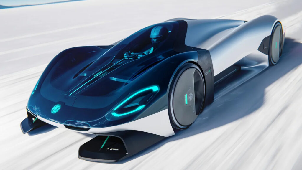 Þar sem kínverska fyrirtækið SAIC Motors er í eigu kínverska fyrirtækisins, kemur það ekki á óvart að MG hafi verið viðstaddur. Það var virðing fyrir landhraðamethafa frá 1950 með EXE181 hugmyndinni. Hámarkshraði þessa rafmagns ofurbíls var ekki tilkynntur, en hann mun ná glæsilegum 0-62 mph á 1,9 sekúndum.