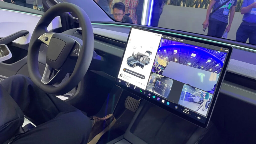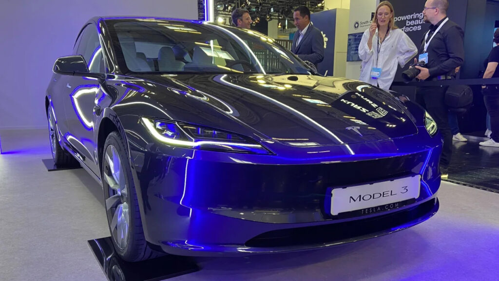 Þrátt fyrir að orðrómur hafi verið um að glænýr Model 2 yrði frumsýnd á sýningunni, afhjúpaði Tesla í staðinn langþráðar uppfærslur á söluhæstu Model 3 executive salnum sínum.