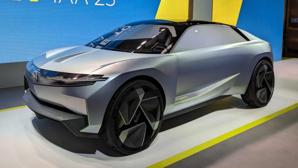 Tilraunahugmyndabíllinn var kynntur að fullu í München. Opel / Vauxhall heldur spilunum sínum nálægt brjósti sínu hvað varðar sérstöður, en það er líklegt að vörumerkið muni nota Medium STLA grunninn frá móðurfyrirtækinu Stellantis, sem gerir rafbíl í fjölskyldustærð kleift að ná allt að 700 km á einni hleðslu.