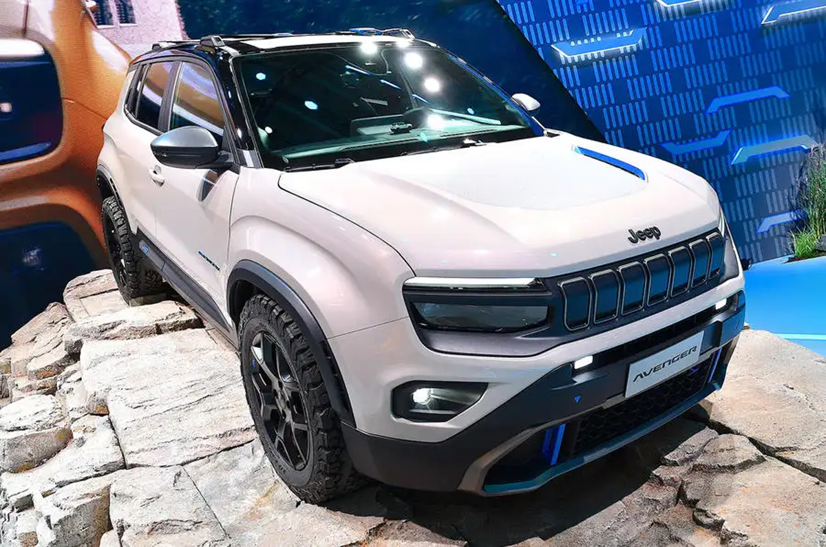 Jeep Avenger var einnig sýndur í sérsniðnu torfæruafbrigði með harðgerðri yfirbyggingu og breiðari sporvídd.
