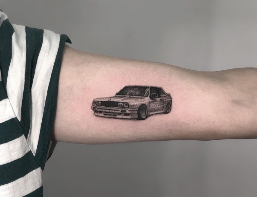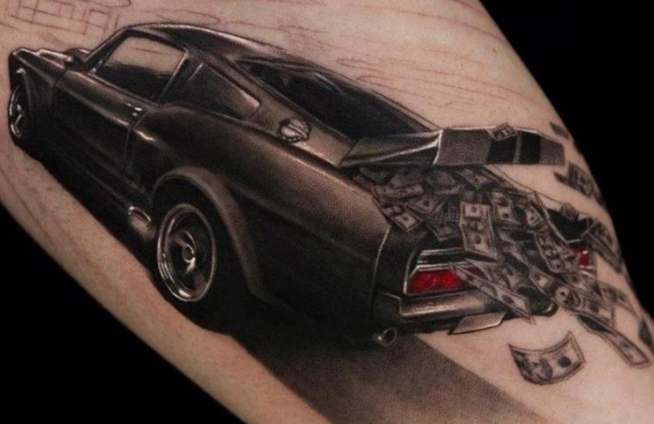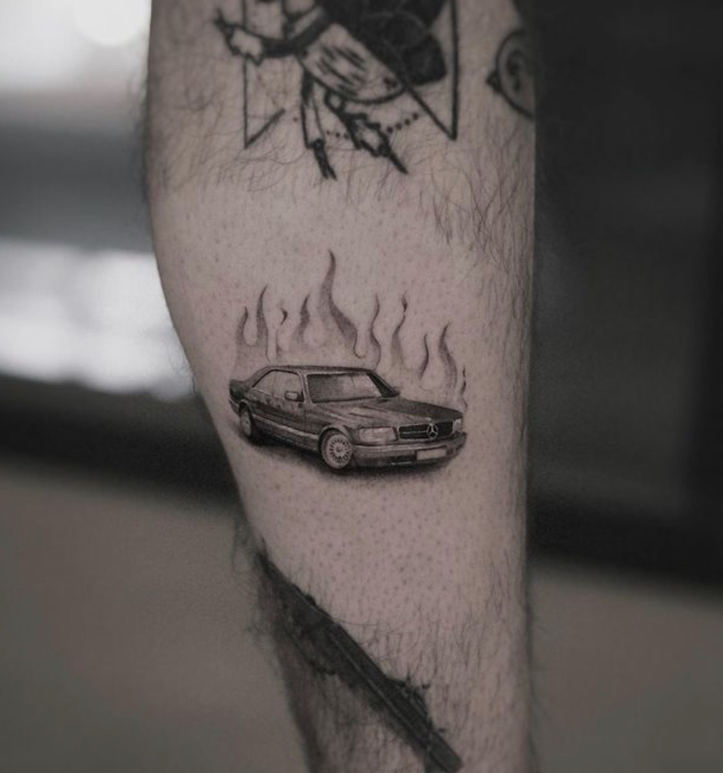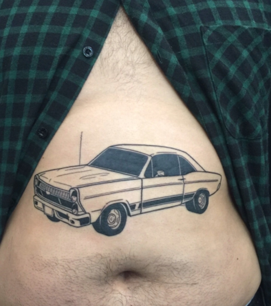 Jæja, gott og vel. Staðhæfingar út í bláinn og ekki vísað í heimildir á síðunni. Skítt með það. Lítum á myndir og höfum það gott. Bílatattú bílafólksins gjörið svo vel: