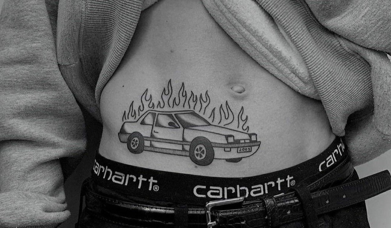 „Þú ert það sem þú borðar“ segir málshátturinn gamli og er það gott í sjálfu sér. Annað sem gefur vísbendingu um líf fólks gæti verið tattú eða húðflúr. Það hefur þó ekkert með mat að gera en bílar, mótorhjól og Formúlubrautir eru á meðal þess sem bílafólk hefur látið flúra á hörund sitt.