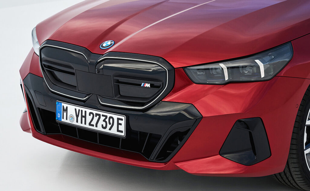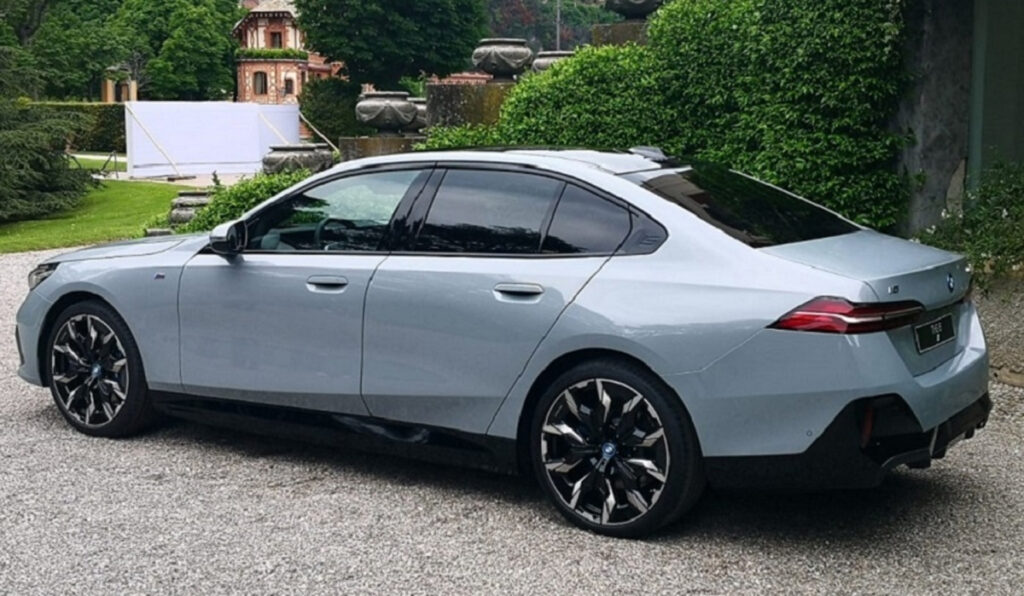 i5, sem er hér á myndinni, stækkar 5 Series módellínuna til að keppa við samkeppnishæfa, alrafmagnaða stóra lúxusbíla eins og Mercedes EQE.