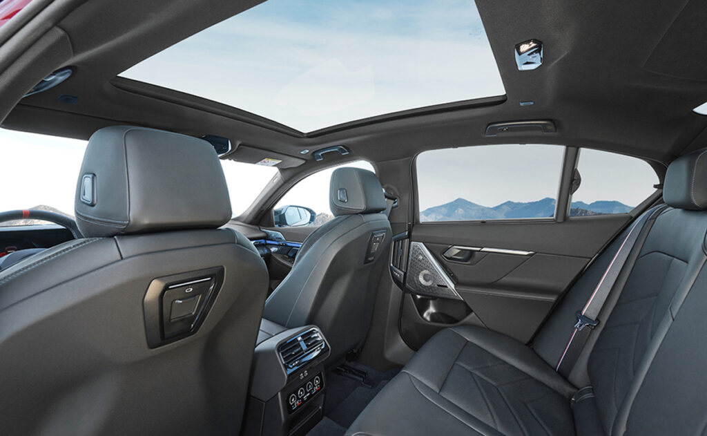 BMW sagði að farangursrýmið væri 520 lítrar á fólksbílagerðum með brunahreyfli en skottið á i5 er 490 lítrar.