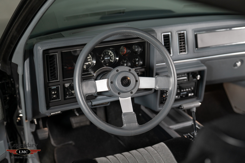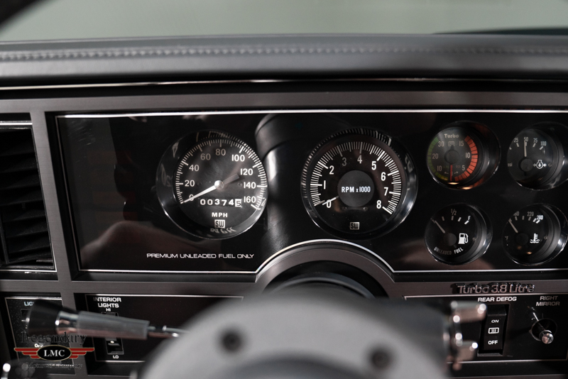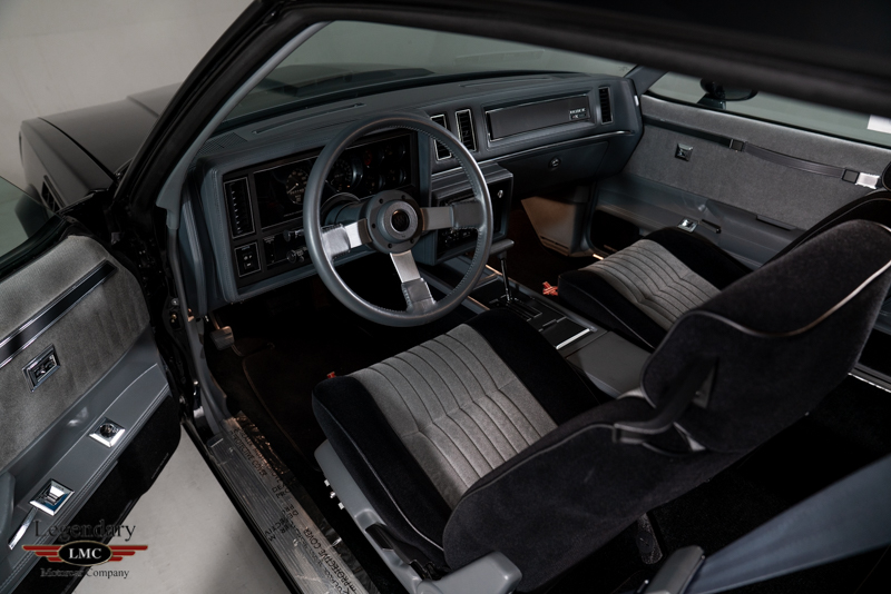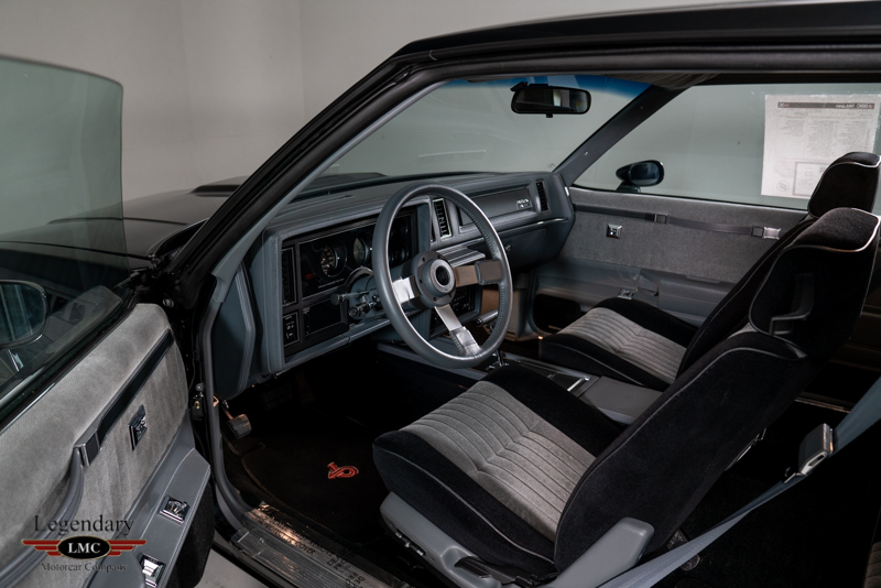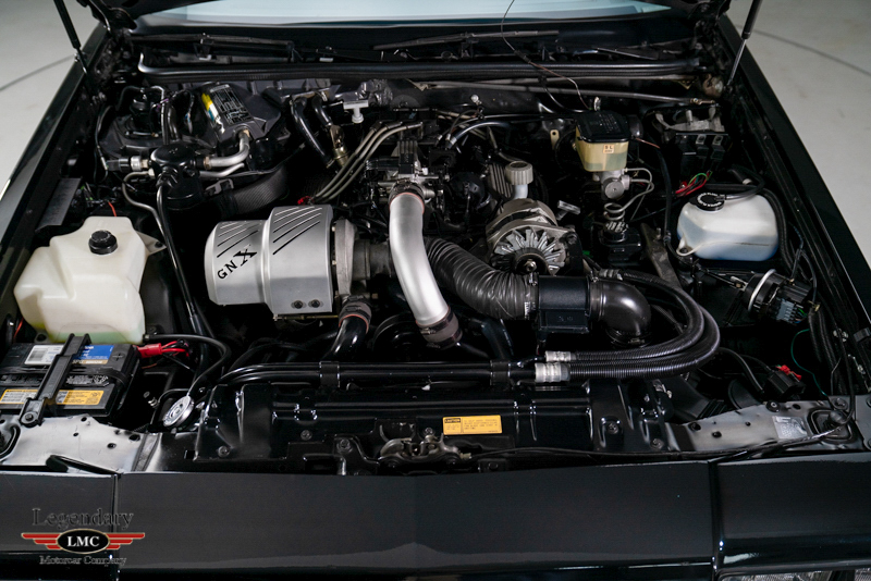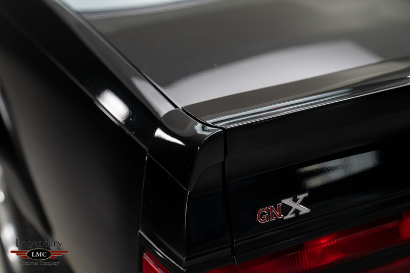 Fram í voru sportsæti með sérstökum höfuðpúðum. Sætin voru með með ísaumi og stýrið sérstaklega sportlegt. Þessi bíll er númer 385 í framleiðsluröðinni af þeim 547 eintökum sem framleidd voru. Bílnum hefur verið framúrskarandi vel við haldið frá því að hann var afhentur og kílómetramælirinn sýnir aðeins 603 km. Upprunalegir límmiðar eru í gluggum og GNX handbók fylgir bílnum.