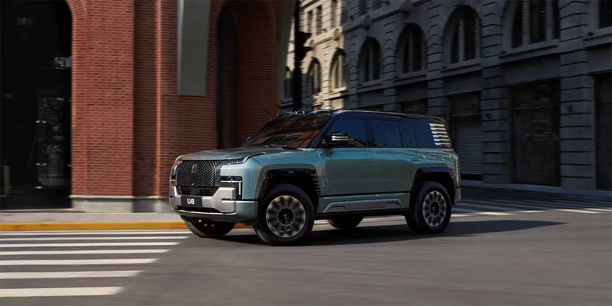 Í Kína er U8 jepplingurinn lúxusjeppi í fullri stærð sem kostar um 152.000 dollara (um 20,7 milljónir ISK) og knúinn af 49 kílóvattstunda rafhlöðu og bensínvél sem eykur drægni, sem gefur honum drægni upp á 1.000 km. Vegna hæfileika sinna í torfærum kemur hvert hjól með rafmótor sem gerir því kleift að beygja á staðnum eða renna til hliðar inn í bílastæði.