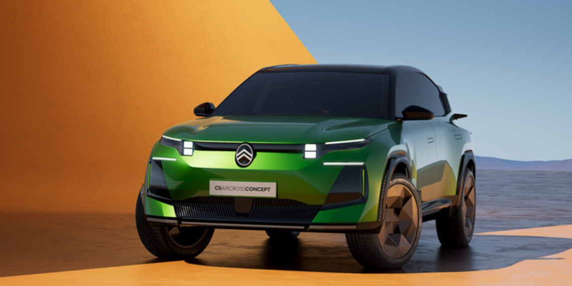 - C5 Aircross hugmyndabíllinn, sem sýndur er á bílasýningunni í París, vísar til annarrar kynslóðar sportjeppans, sem verður með fullrafmagnaða drifrás í boði og mun keyra á STLA Medium grunninum.
