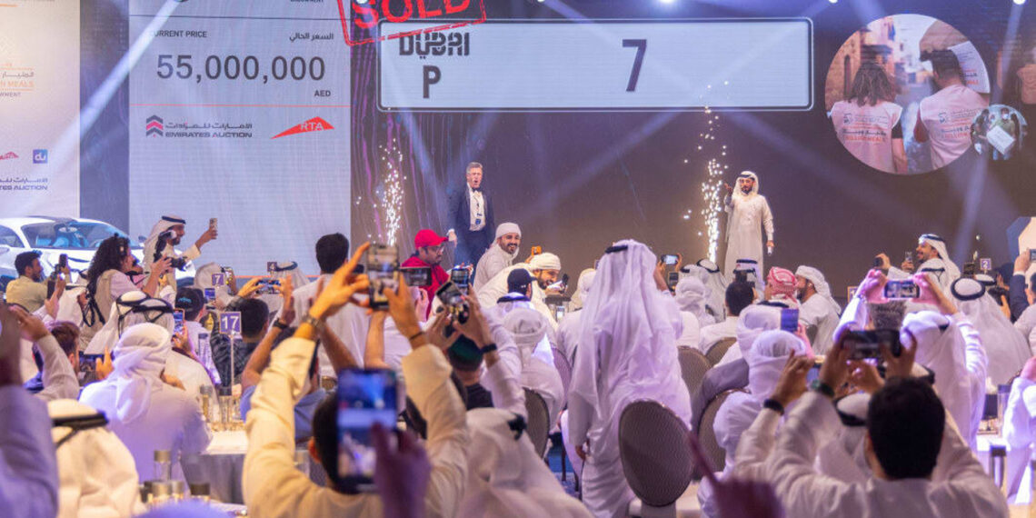 Númerið sem talið er að sé það dýrasta í heimi seldist fyrir 55 milljónir UAE dirhams (15 milljónir dala) á uppboði um helgina.