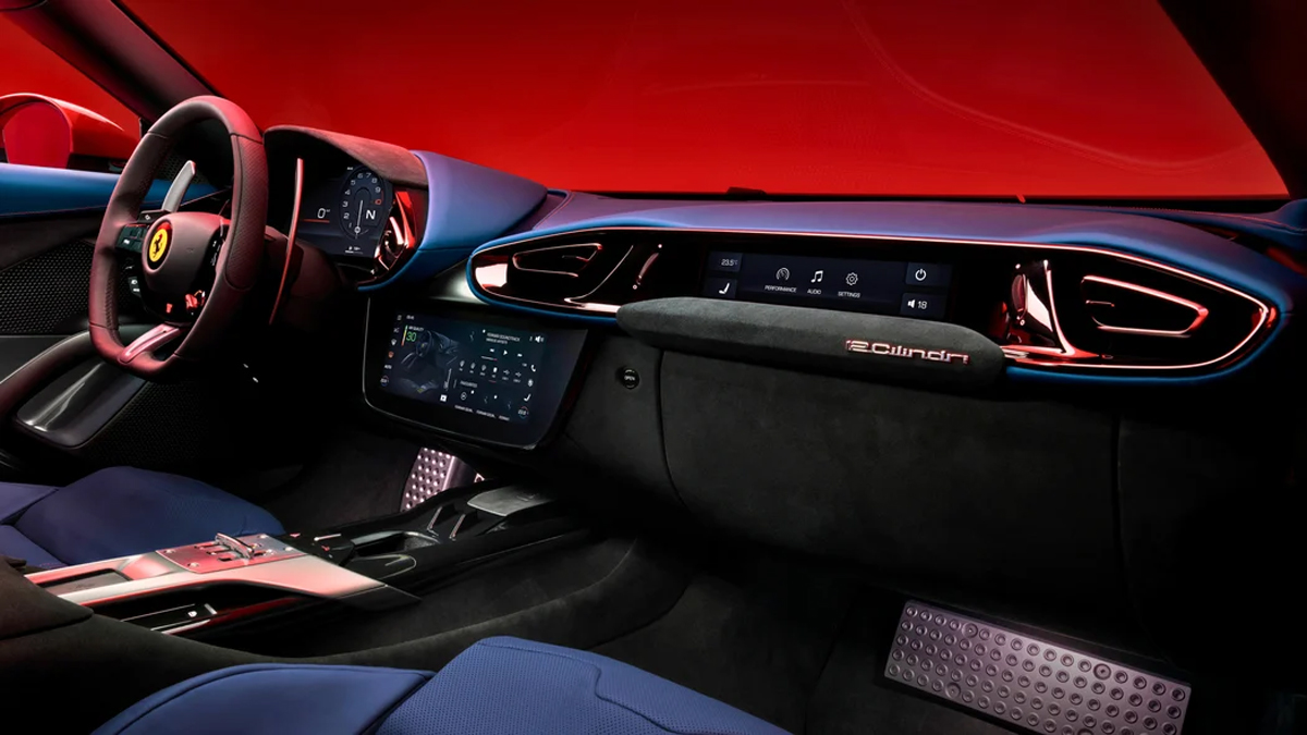 12Cilindri er með fjórhjólastýri með afturhjólum sem geta hreyfst óháð hvert öðru, kerfi sem kom fyrst fram á 812 Competizione. Nýja kerfið hjálpar til við að koma á stöðugleika í bílnum í beinum eða löngum beygjum þrátt fyrir að hafa styttra hjólhaf, sagði Fulgenzi.