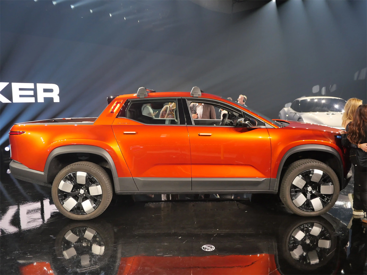En pallbíllinn er ekki það eina sem er minni; verð hans er líka lægra. Fisker segir að pallbíllinn muni byrja á 45.400 dollurum (um 6 millj. ISK), sem er 37.900 dollarar Um 5,0 millj ISK) eftir alríkisskattafslátt. Og Fisker ætlar að búa til Alaska hér í Ameríku, kannski ásamt PEAR í fyrrverandi verksmiðju í Lordstown.