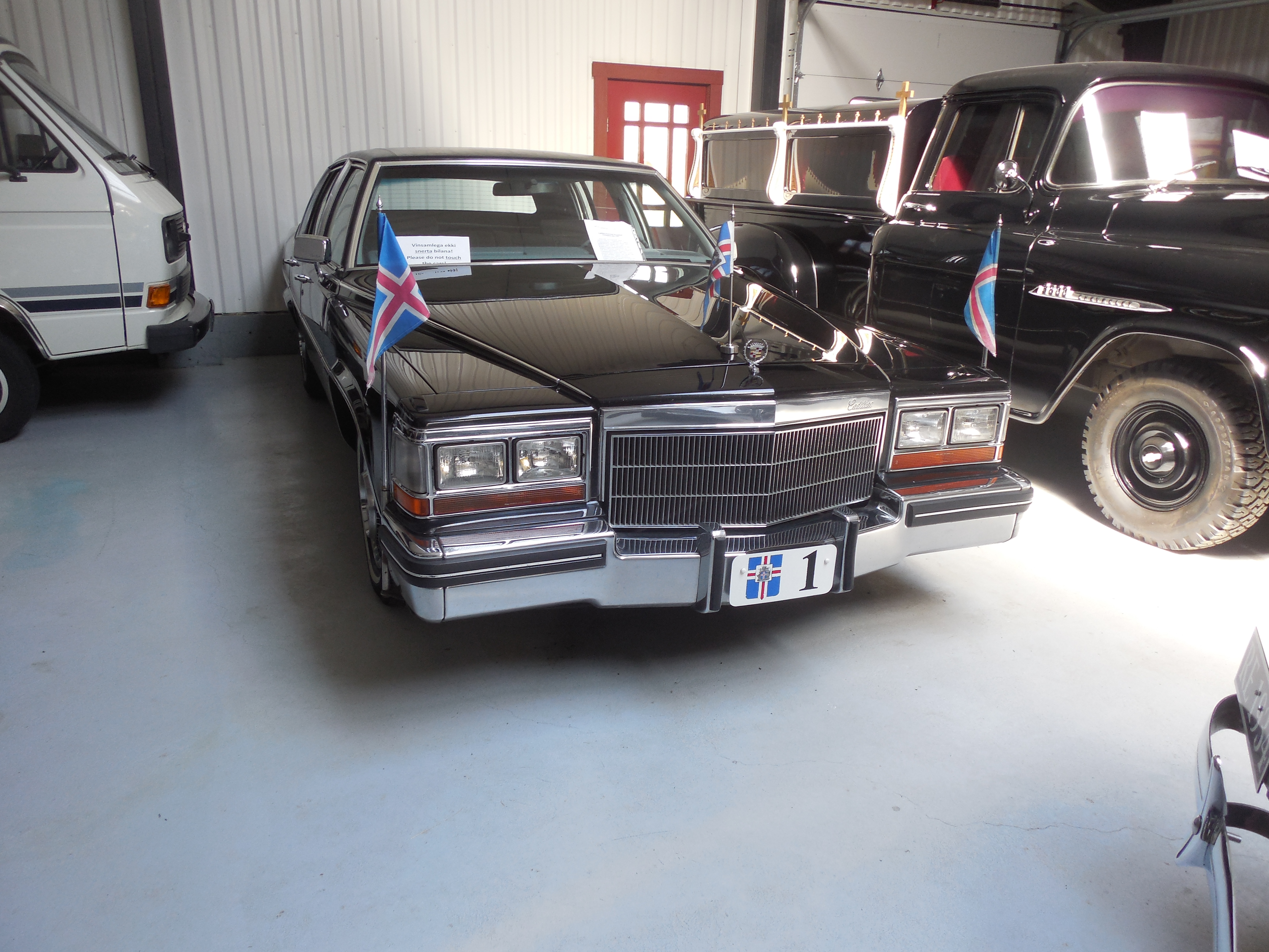 Þarna var á ferðinni frú Vigdís Finnbogadóttir forseti, á stífbónuðum og nánast geislandi (það var auðvitað Vigdís sem fegurðin geislaði af og það hefur smitast yfir í bílinn) Cadillac Fleetwood, árgerð 1982.