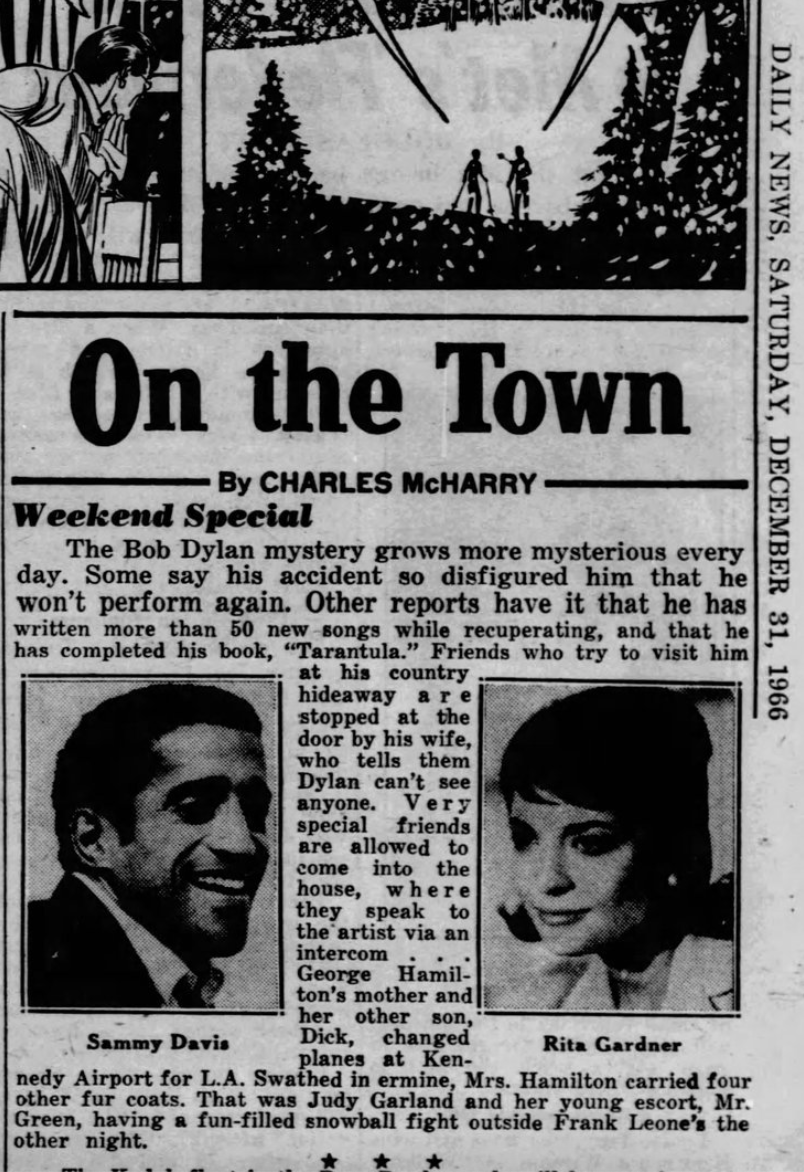 Burtséð frá því þá virðist Dylan hafa verið úr leik eftir slysið því hann frestaði öllu tónleikahaldi og hvarf af sjónarsviðinu í nokkurn tíma. Umfjöllun blaðanna um slysið var misvísandi og Dylan ýmist sagður á sjúkrahúsi, með heilaskaða, blindur og jafnvel látinn.