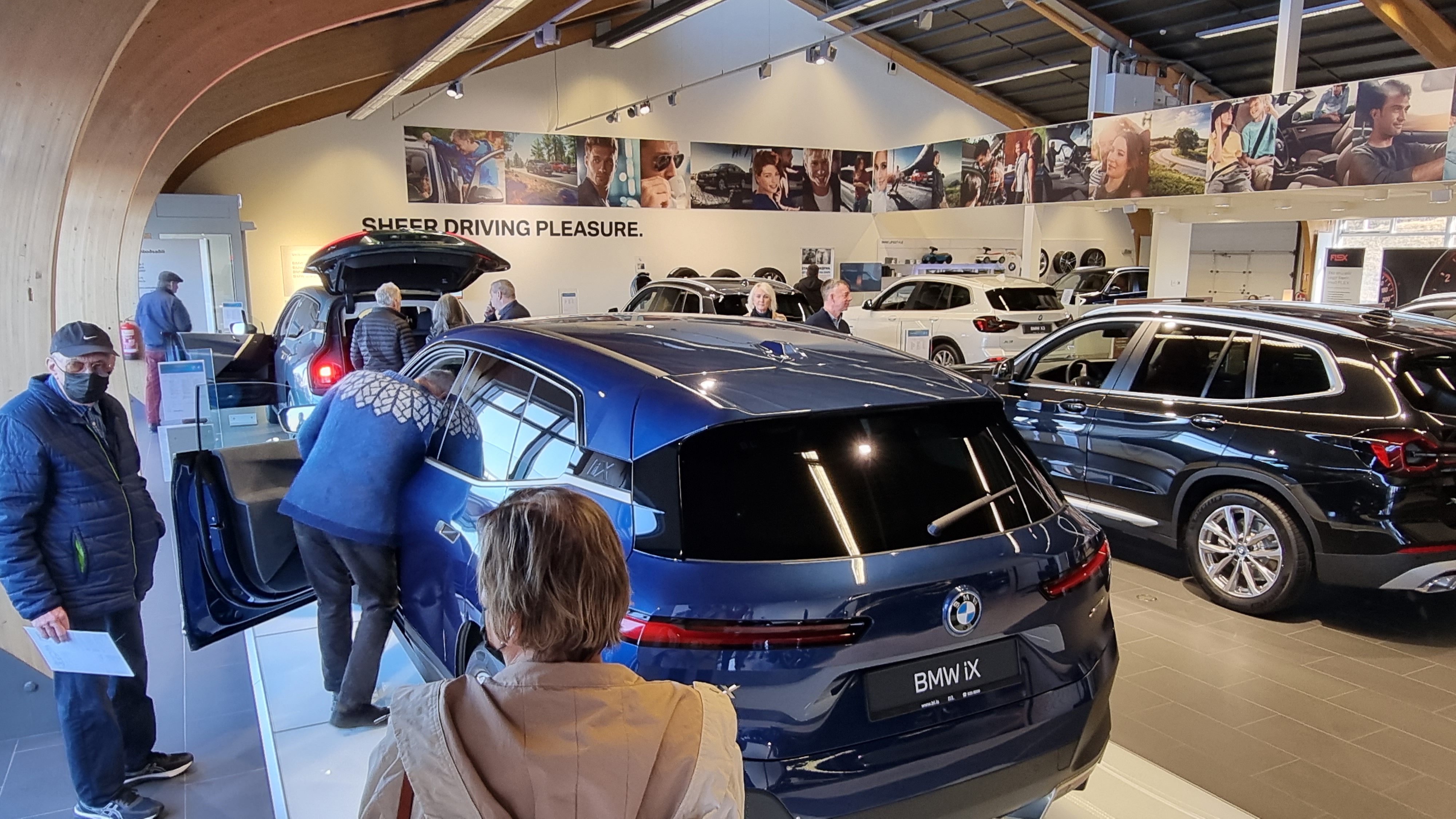 BL frumsýndi alveg nýjan BMW iX 100% rafmagnsbíl í gær. Þetta er fyrsti stóri bíllinn frá BMW sem kemur 100% rafdrifinn. Það er óhætt að segja að bíllinn veki athygli. Fullt var út úr dyrum hjá BL í gær þegar við kíktum á bílasýningu hjá þeim.