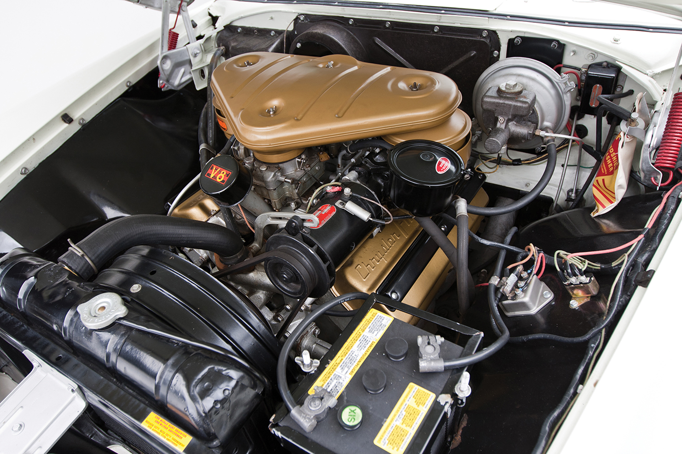 Vélin í hinum kraftmikla 300-bíl var sú öflugasta sem sést hafði í fjöldaframleiddum bíl árið 1955, en eins og nafnið bendir til var hún 300 hestöfl. Rúmtak Hemi-vélarinnar var 331 kúbik (5,4 lítrar) og tveir 4ra hólfa blöndungar sáu til þess að eldsneytið kæmist hratt og örugglega inn í brunahólfin átta.