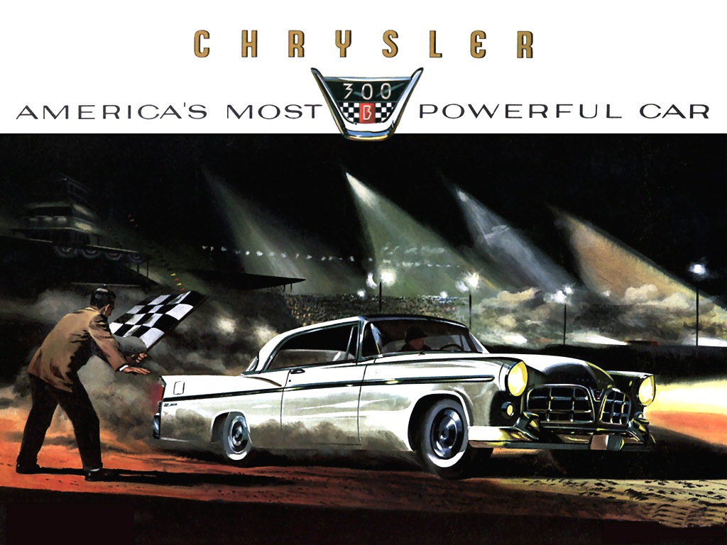 Chrysler 300 vakti verðskuldaða athygli þegar hann var kynntur til leiks vorið 1955 og dró að sér venjulega bílamenn jafnt sem NASCAR-kappaksturshetjur. Framleiðslan var þó ekki nema rétt rúmlega 1700 eintök fyrsta árið sem gerir þennan brautryðjanda að einstökum safngrip í dag.