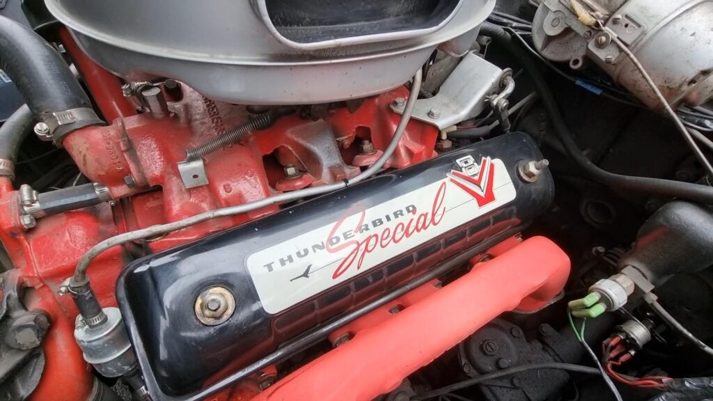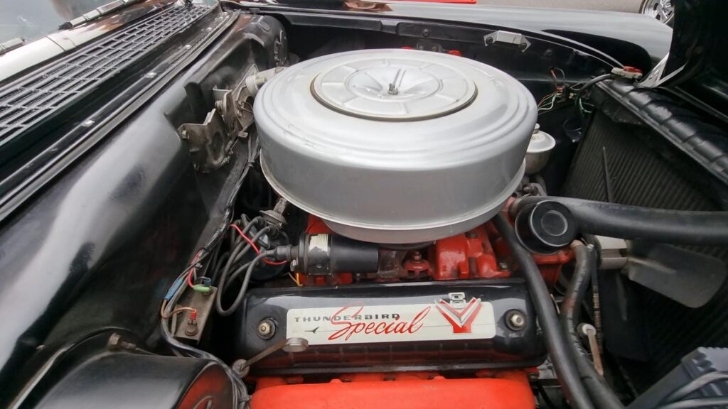 Þessi fallegi svarti Skyliner er knúinn af 312 cid V8 T-Bird Special vél sem er pöruð við Ford-O-Matic gírkassa.