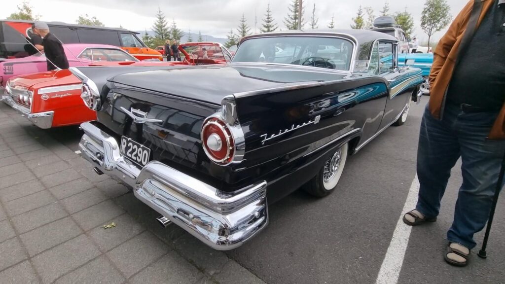 Eðvarð Hreiðarsson flutti þennan svarta Skyliner inn árið 2005 en bíllinn var keyptur frá Florida. Garðar átti annan Ford Fairline fjögurra dyra árgerð 1956, bláan að lit sem hann hafði sjálfur flutt inn í samvinnu við vin sinn.