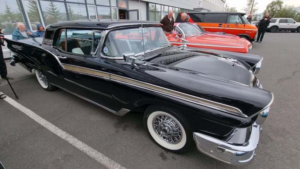 Eðvarð Hreiðarsson flutti þennan svarta Skyliner inn árið 2005 en bíllinn var keyptur frá Florida. Garðar átti annan Ford Fairline fjögurra dyra árgerð 1956, bláan að lit sem hann hafði sjálfur flutt inn í samvinnu við vin sinn.