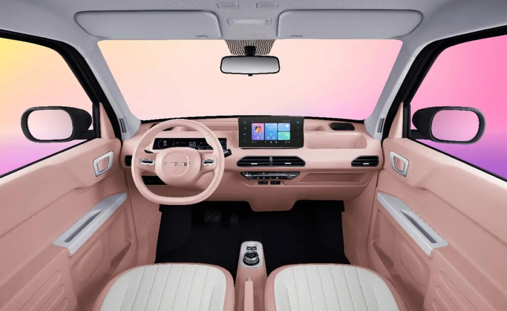 Geely hefur aukið „sportlega-sætur þáttinn“ á nýjustu Panda sínum til að fanga unglingamarkaðinn. Hann er með svörtum málningargrunni með fjólubláum röndóttum innréttingum og fjólubláum og hvítum felgum. (Það er líka fáanlegt í hvítu og gráu.) Kringlótt aðalljósin og val um bleika eða hvíta innrétting fullkomna teiknimyndatilfinningu Kartsins.