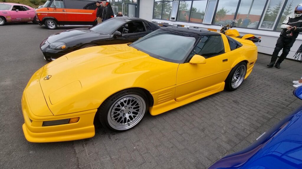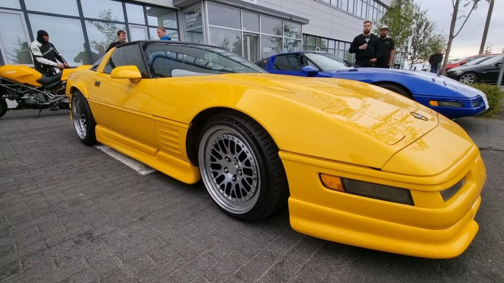 Hvað varðar litavalkostina sem voru í boði fyrir Corvettuna 1994, þá var „Competition Yellow“ einn af þeim litum sem í boði var fyrir það árgerð. Competition Yellow var líflegur og áberandi gulur litur sem bætti sportlegu og kraftmiklu útliti við Corvettuna. Það er liturinn á bíl Geirs Elvars.