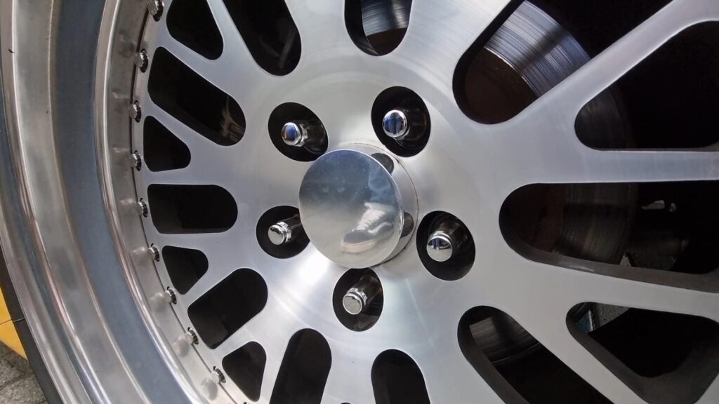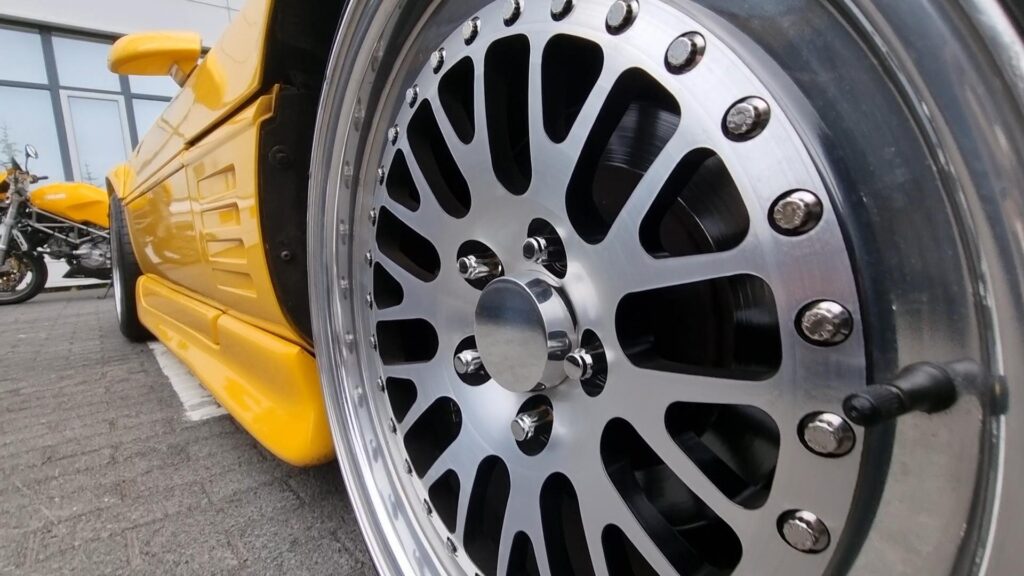 Geir fór strax í að betrumbæta bílinn og náði sér í felgur og spoilerkitt í fyrrasumar. Felgurnar voru svartar og komnar til ára sinna en hann lét renna framan á miðjum og póleraði lippin.