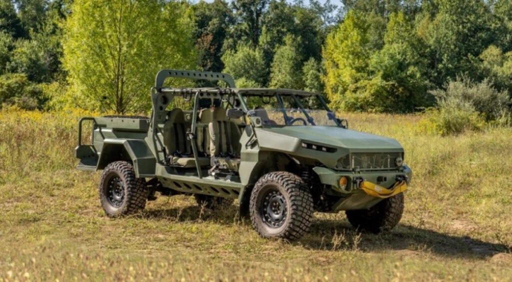 GM Defence var þegar með kerfi rafbíla í gangi hjá bandaríska hernum, en það var með 66 kWh rafhlöðupakka, sem virtist vera byggt á fyrri kynslóð rafknúinna farartækja GM.