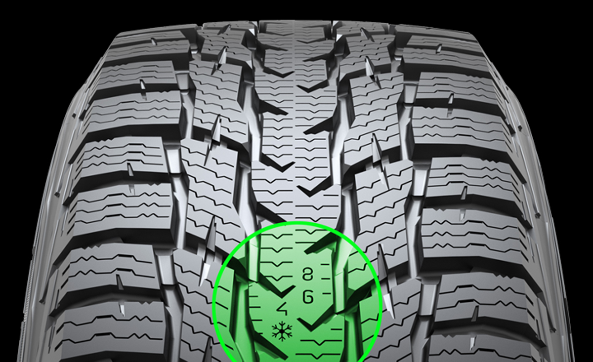 Til að tryggja öruggan vetrarakstur er nauðsynleg rifadýpt á bilinu 4 til 5 millimetrar. Snjókornatáknið er áfram sýnilegt þar til rifadýpt er fjórir millimetrar.