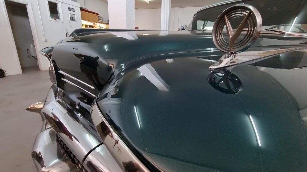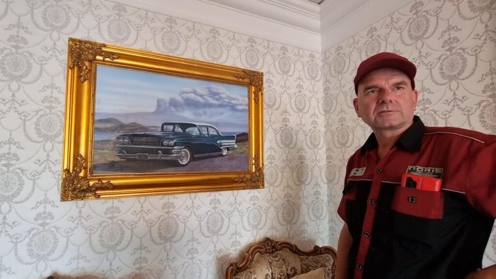 En það fyrsta sem tekur á móti manni þegar inn kemur er glæsileg mynd af lúxuskerru, Buick Century árgerð 1958 sem Grímur flutti með sér frá Íslandi.