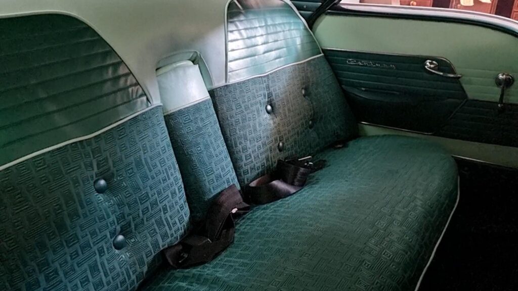 Buick Century frá 1958 var með rúmgóðri og þægilegri innréttingu með stílhreinu áklæði og vel hönnuðu mælaborði.
