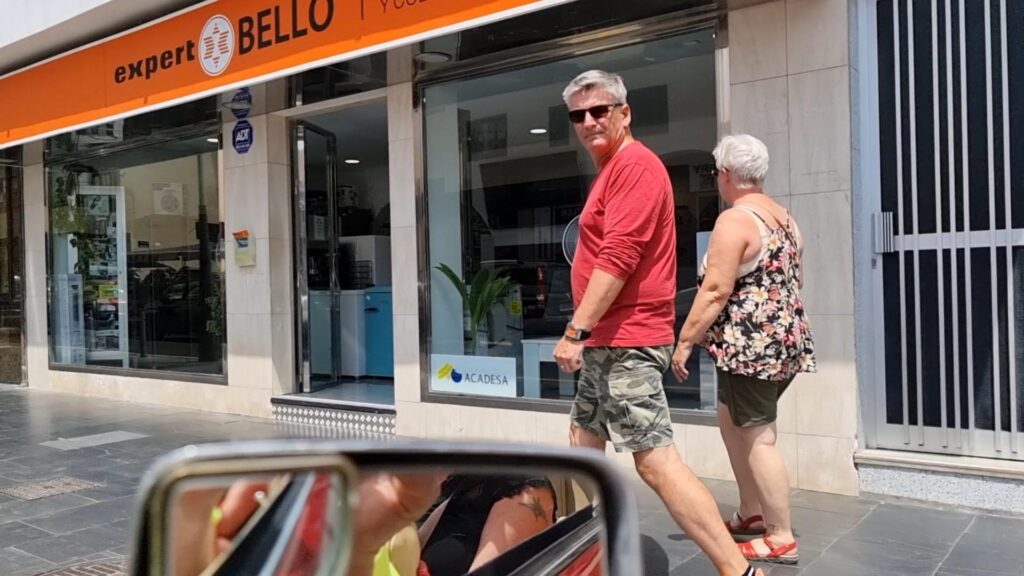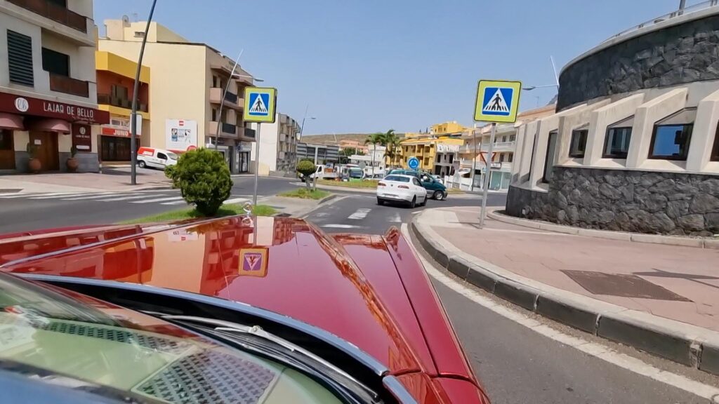 Það getur verið vandaverk að koma bílnum fyrir á svo litlum strætum sem finnast á Tenerife. Það þarf lagni við að aka svona stórum bíl.