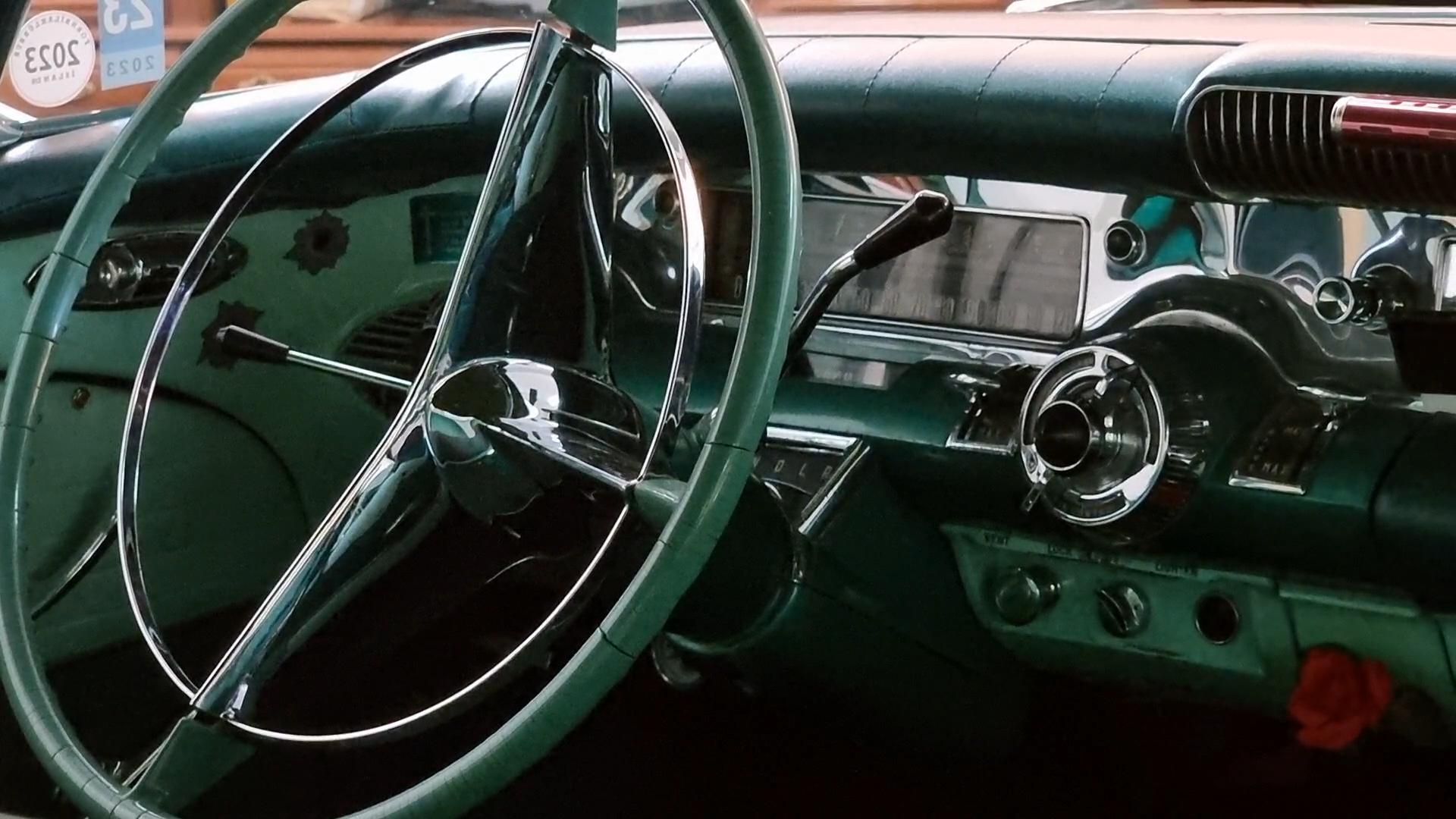 Buick Century frá 1958 var með rúmgóðri og þægilegri innréttingu með stílhreinu áklæði og vel hönnuðu mælaborði.