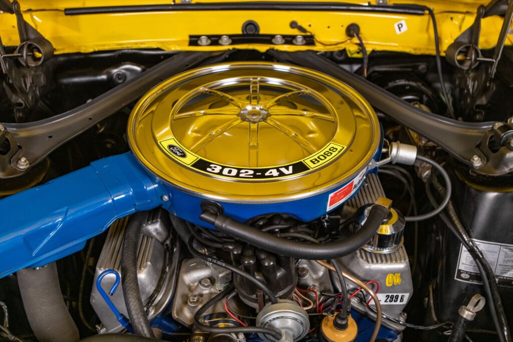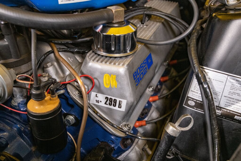 Hjarta Boss 302 var vélin. Hann var með 5.0 lítra V8 vél (302 rúmtommur) sem skilaði 290 hestöflum.