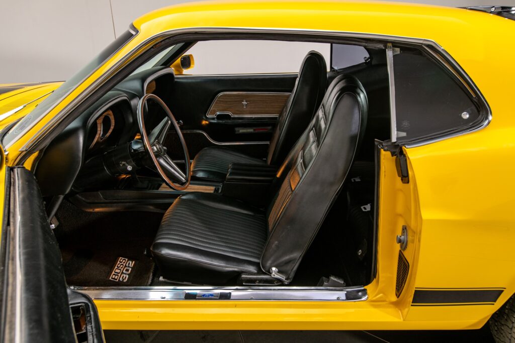 Boss 302 var með einfaldri og hagnýtri innréttingu með háu mælaborði og sportlegu stýri.