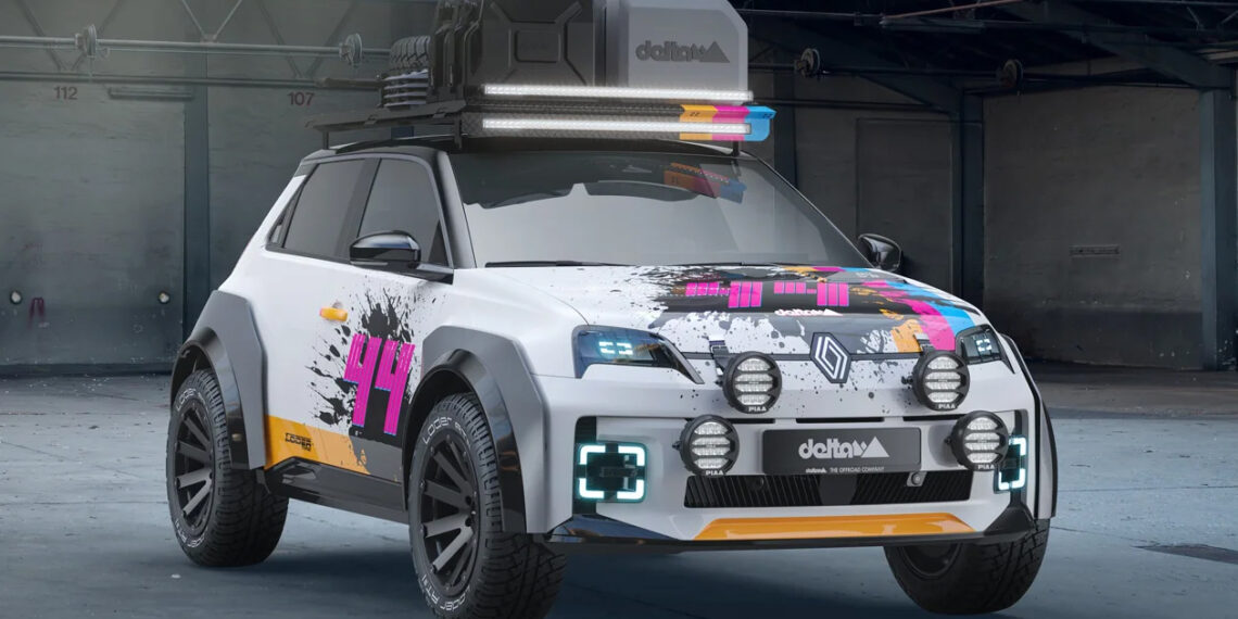 Ónefnda meistaraverkið var hannað af sérfræðingunum í utanvegabreytingum, delta4x4, sem breyttu nýlega fjölskylduvæna MINI Countryman í eitthvað sem væri verðugt að takast á við hið goðsagnakennda Dakar-rallý. „Nýjasta hugmyndin okkar færir raunverulegan ævintýraanda inn í rafmagnsöldina,“ skrifaði delta4x4 á samfélagsmiðlum, „Renault R5, innblásinn af sögulegum rallýtáknum og endurhugsaður sem nettur utanvegabíll.“