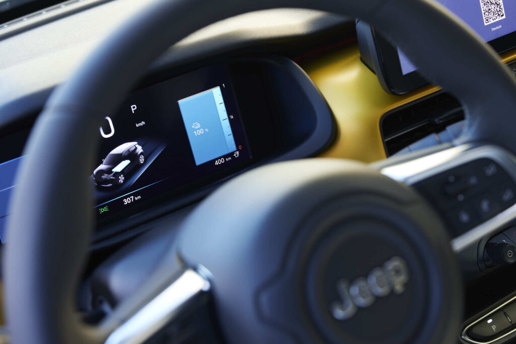Öflug 54 kwst. rafhlaða bílsins kemur bílnum allt að 400 km. skv. WLTP staðlinum en Jeep segir að hann geti komist allt að 550 km. við bestu aðstæður í hefðbundnum borgarakstri.