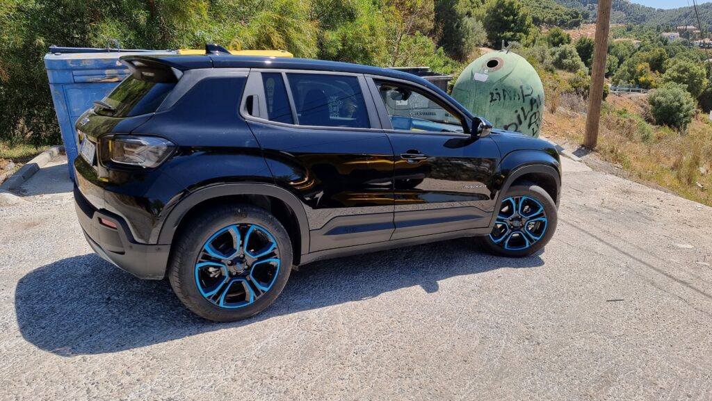 Jeep Avenger samsvarar sér ótrúlega vel. Takið eftir hvernig svartir listarnir ramma bílinn inn og felgurnar gera líka mikið.