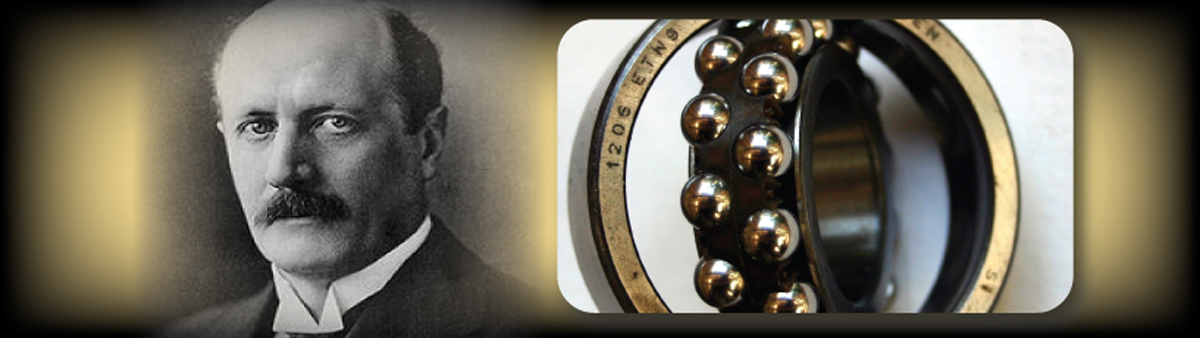 Sven Wingquist og grunnhönnun kúlulegu hans frá árinu 1907.