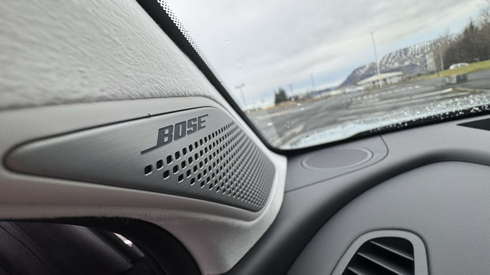 Í bílnum er græja sem virkar eins og „noice cancelling” á nýjustu og öflugustu heyrnartólunum. Hljóðnemar í lofti bílsins taka upp umhverfishljóð og spila síðan annað hljóð sem virkar til mótvægis.