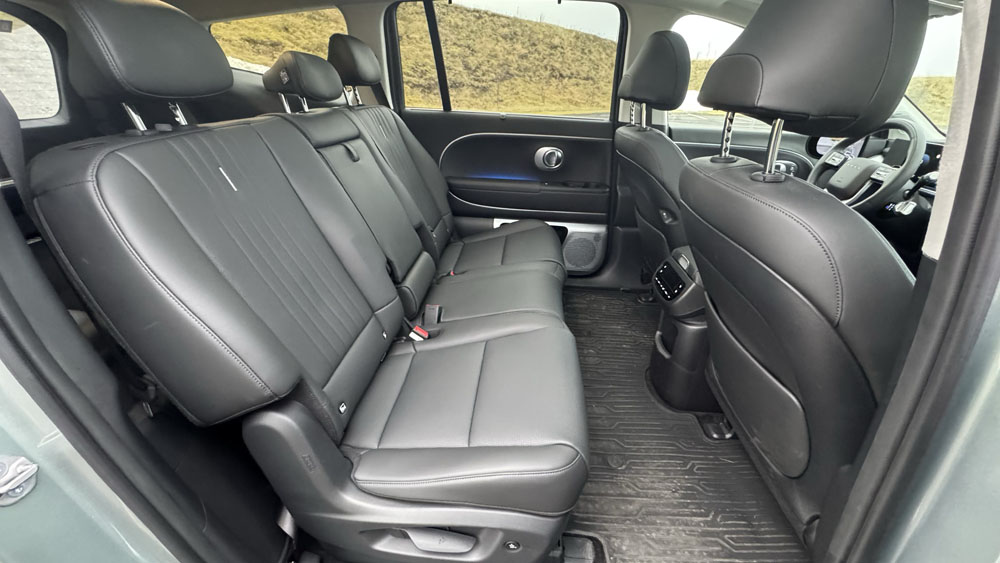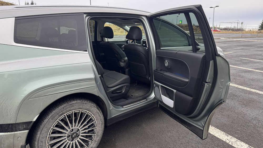 Ioniq 9 er í boði í sjö sæta útfærslu, og „lounge“-sætin í miðjunni (ef pöntuð er 6 sæta útgáfa) eru eitt af því sem gerir bílinn að raunverulegum ferðafélaga frekar en venjulegum sjö sæta bíl. Þriðja sætaröðin er líka óvenju rúmgóð og hentar fullorðnum — sem er sjaldgæft í þessum stærðarflokki.